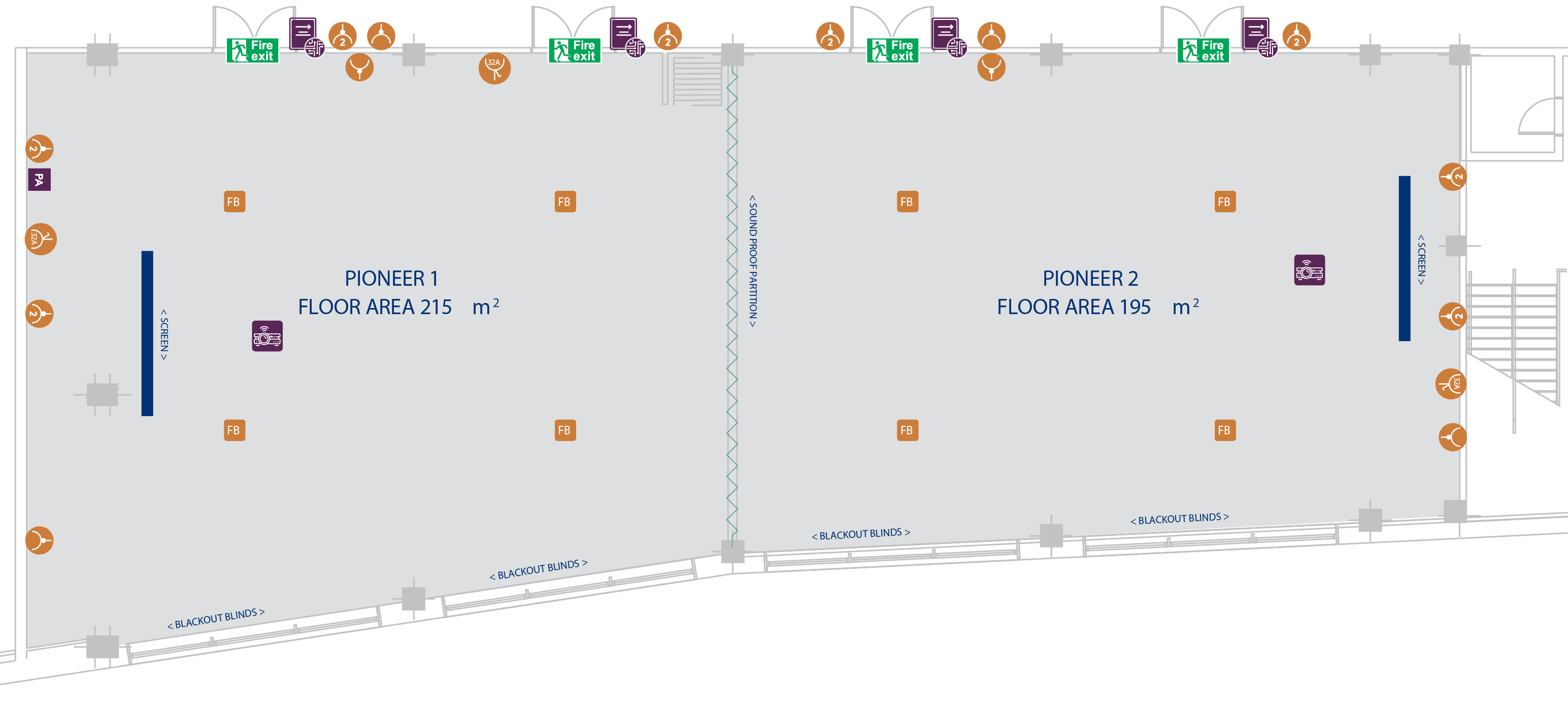 - Dividable wall into Pioneer 1 & 2